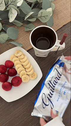 Add chocolate or Cheese to the mug. Let candle melt it for 1-2 Minutes, stirring until melted. Dip and enjoy. 🍫